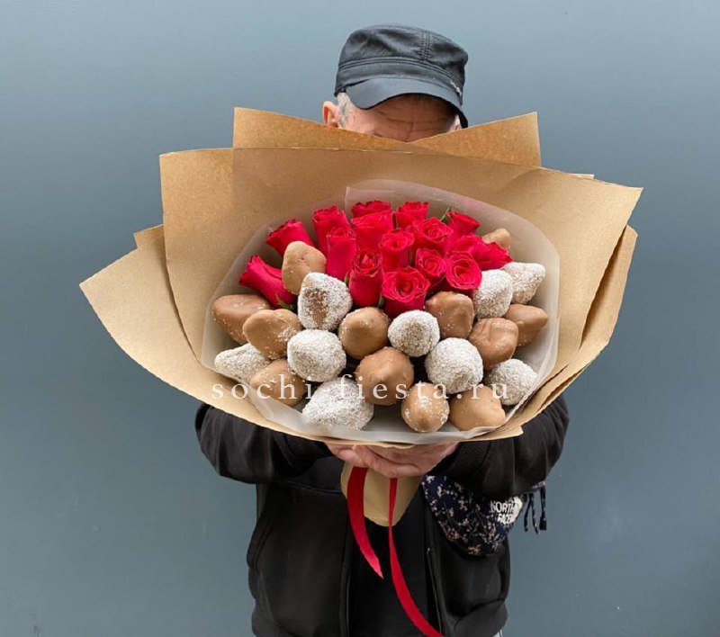 Розы и клубника в шоколаде Мерси