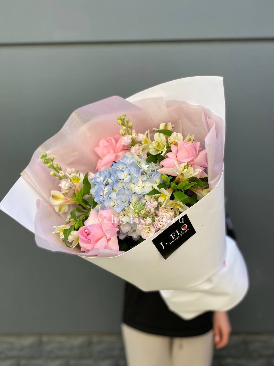 Для заказа товара "Букет с гортензией №2" с доставкой в Великом Новгороде нажмите в корзину