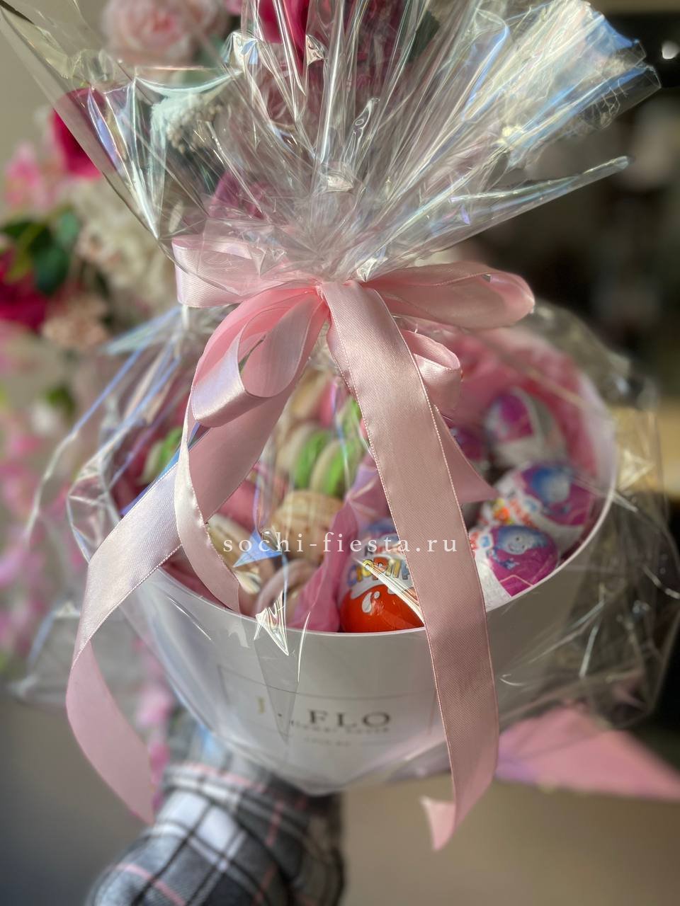 дуо бокс из киндеров и макаронс. Возможна замена киндеров на другой вид шоколада.