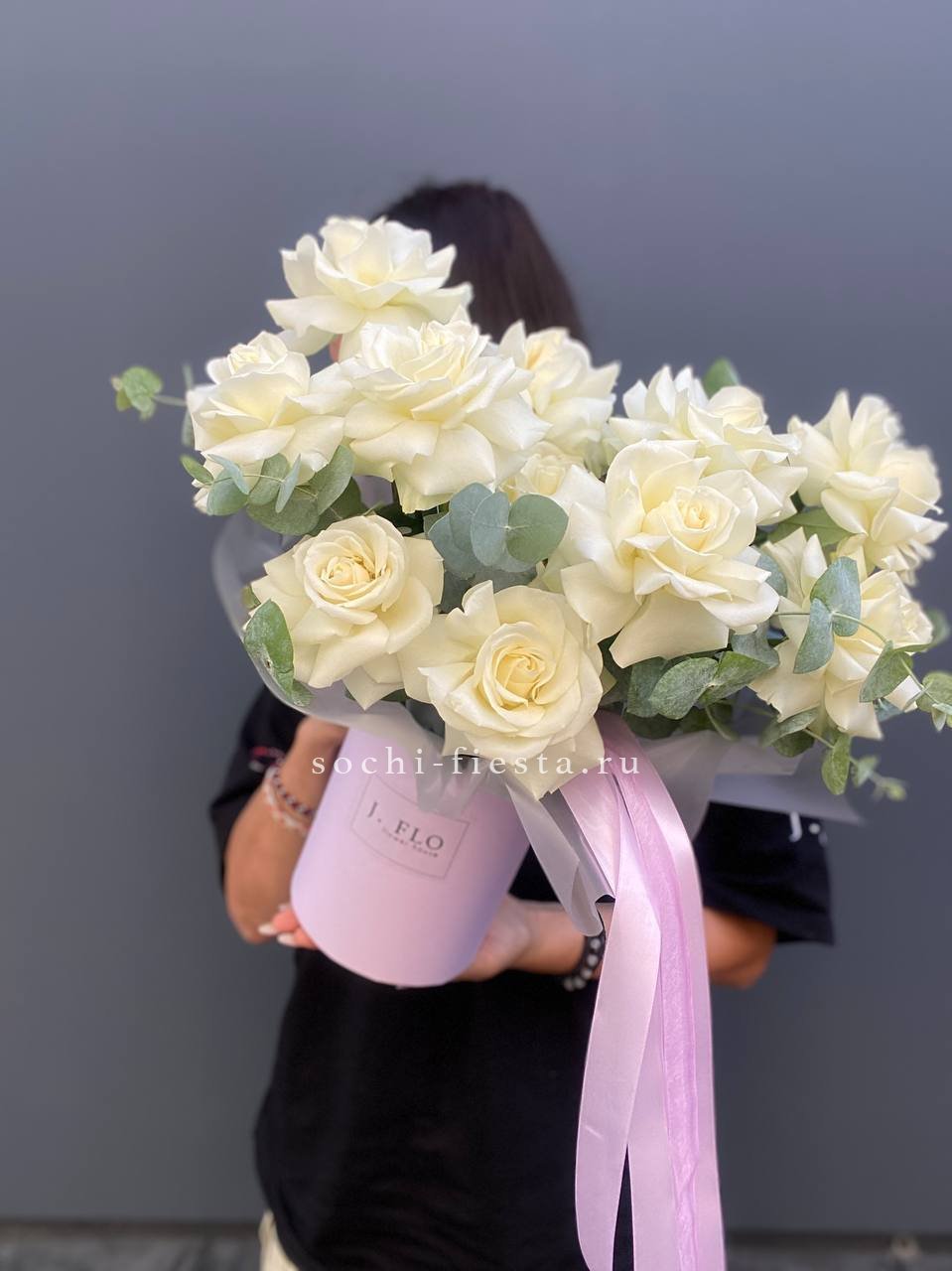 красная и розовая роза, озатамус, диантус, мисти баблс, эвкалипт, бокс 20.