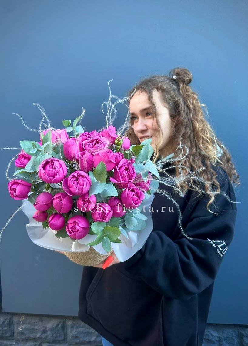 Для заказа товара "Пионовидные розы в джутовом кашпо " с доставкой в Великом Новгороде нажмите в корзину