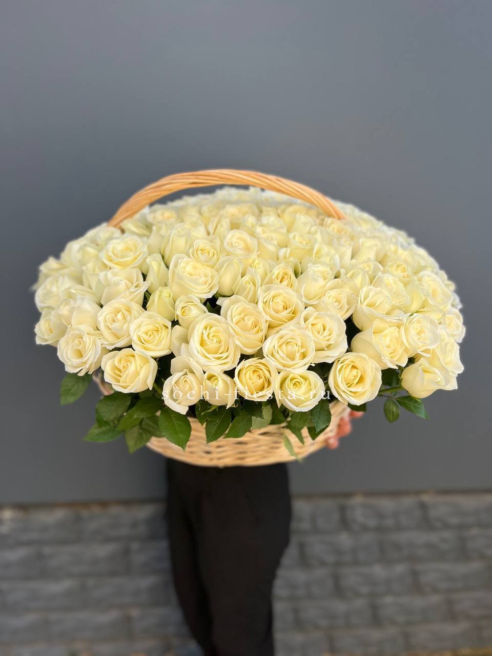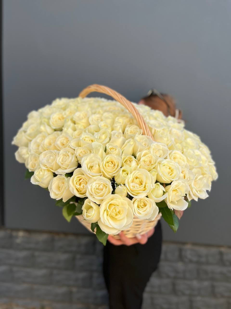 хризантема, кустовая роза, гортензия, белая роза, антиринум, статица, корзина средняя.