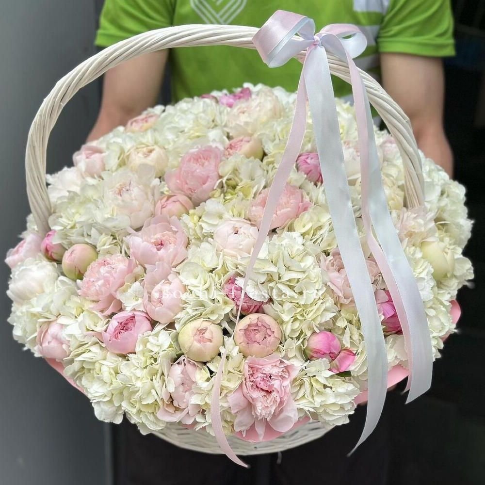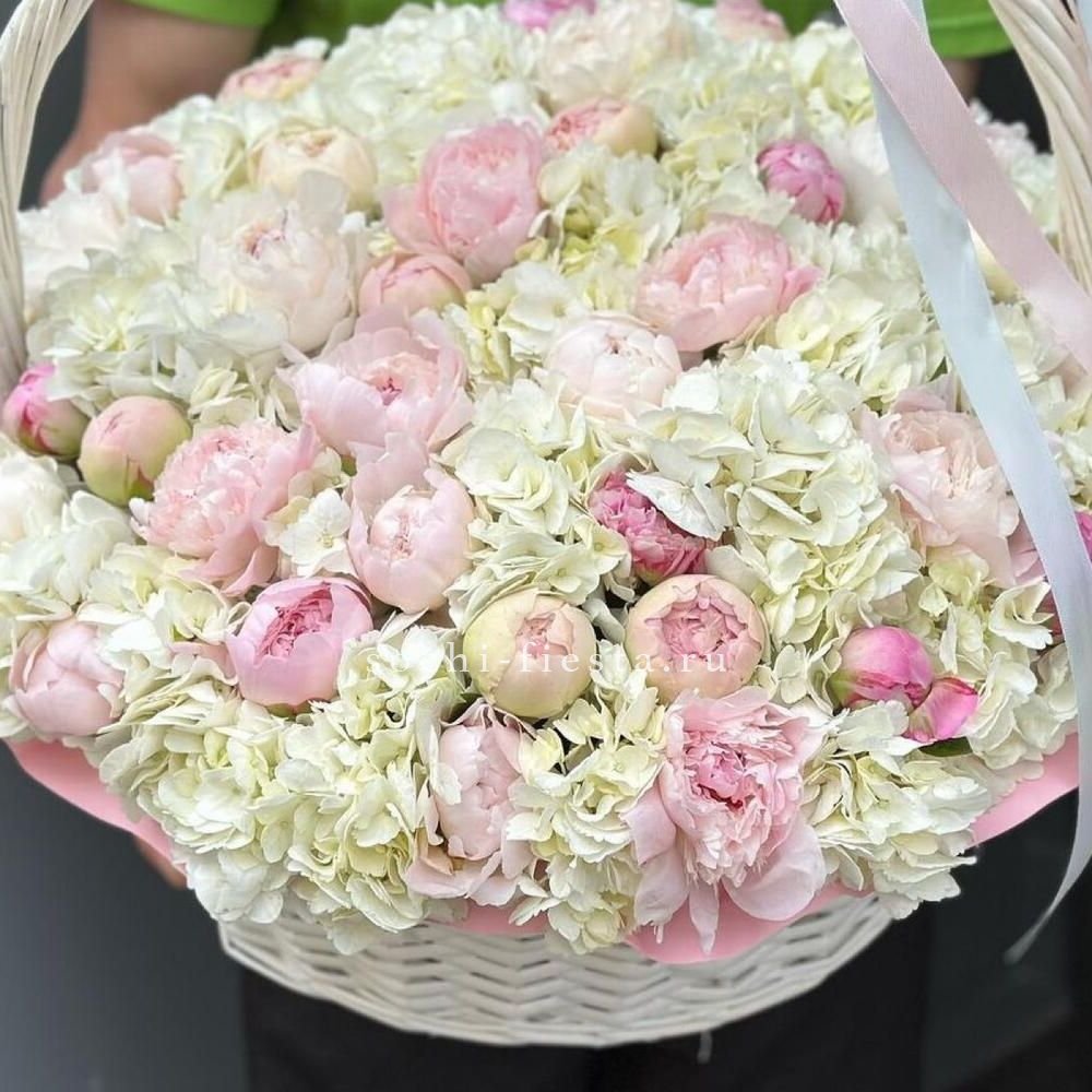 Премиум корзина гортензий и пионов