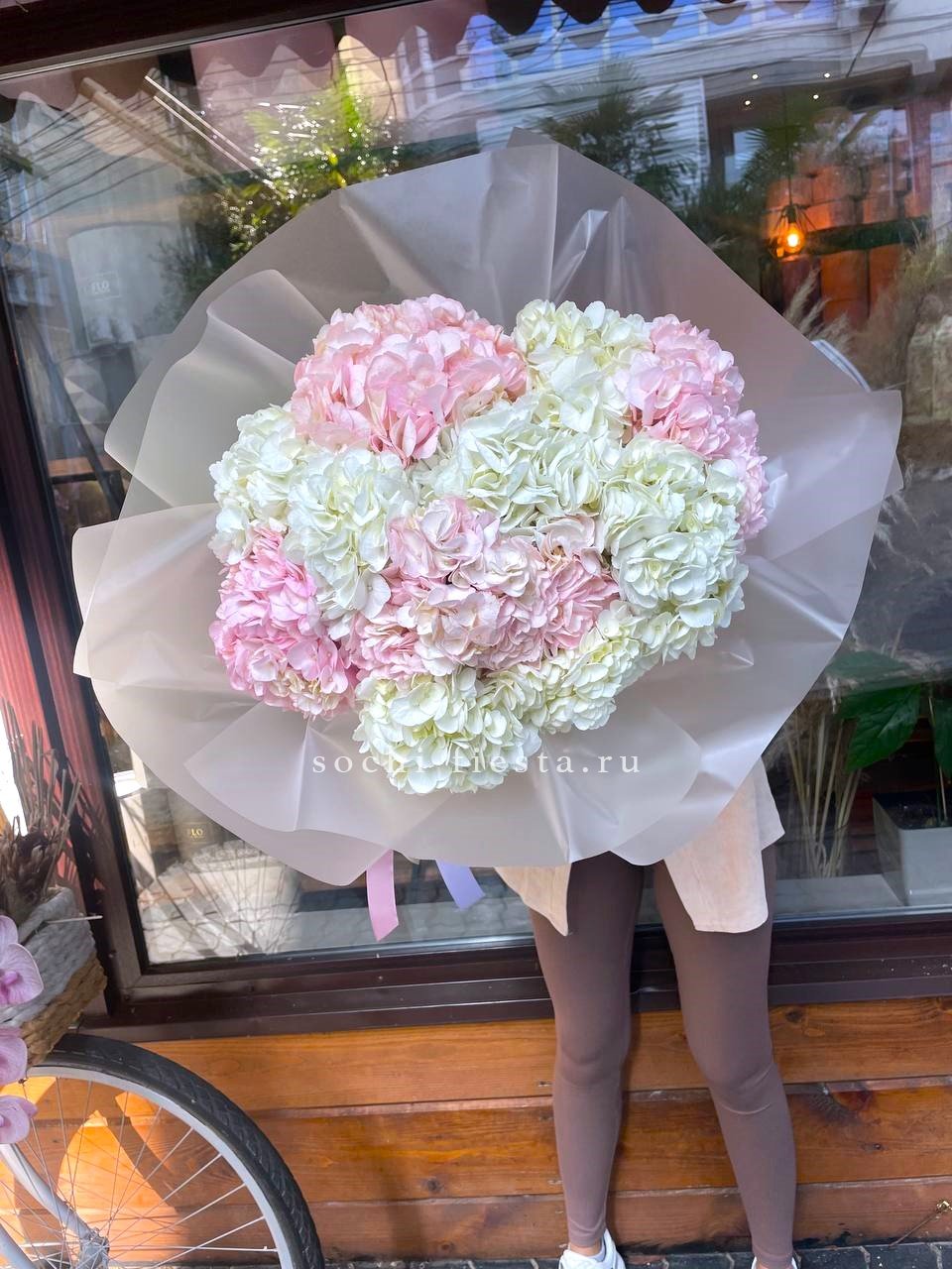 гортензия - 7 шт., лента, дизайнерская упаковка.