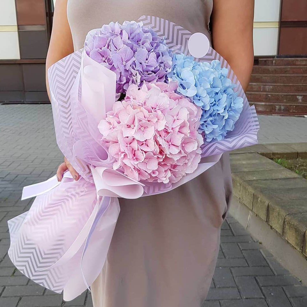 гортензия - 3 шт., лента, дизайнерская упаковка.