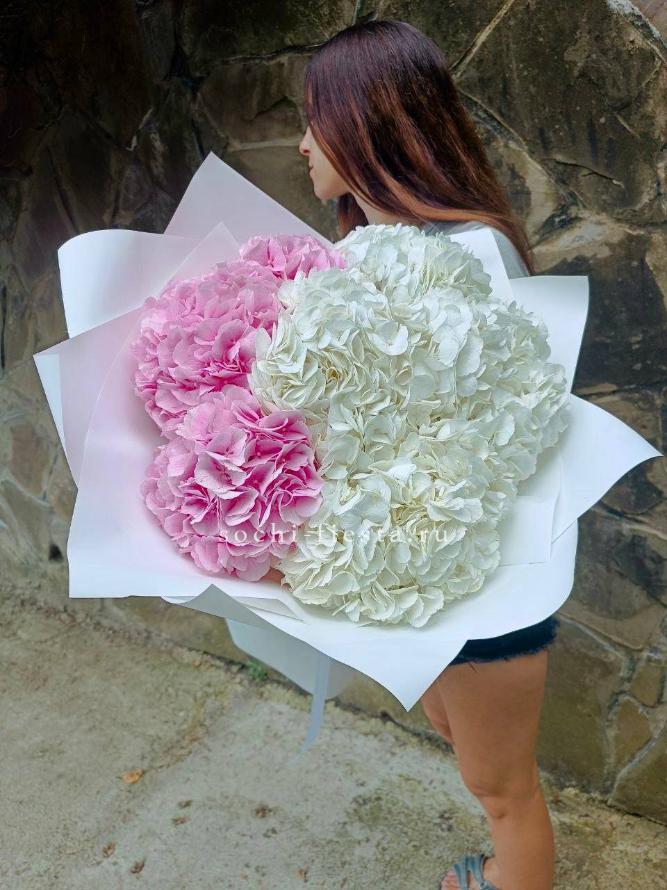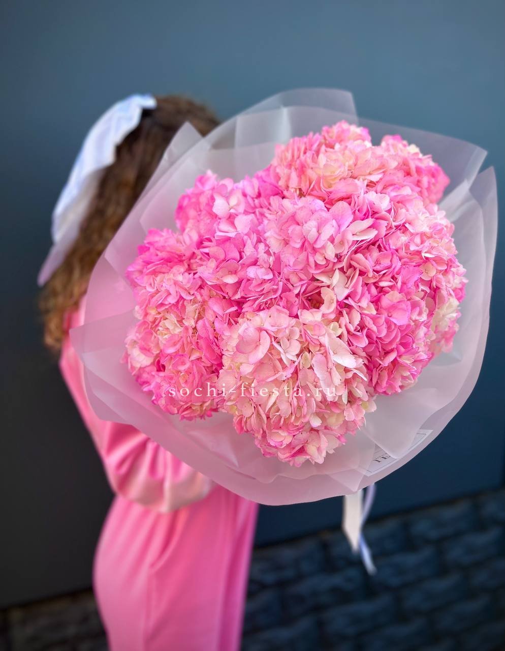 гортензия розовая 9шт., лента, дизайнерская упаковка. Цвет гортензий может незначительно отличаться.