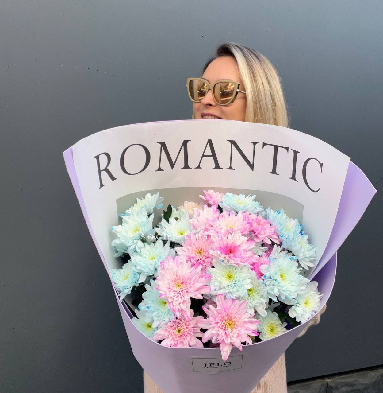 Девять веток кустовых хризантем раскрываются пышной шапкой мелких соцветий. Авторская упаковка добавляет графичности без лишних деталей. Букет держит форму и радует долгим цветением.