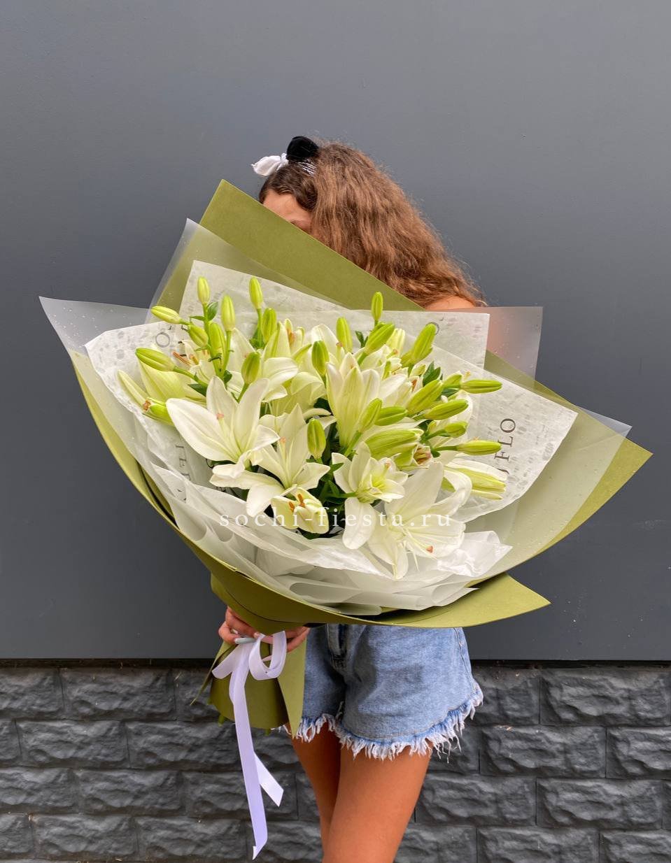 Для заказа товара "Букет лилий "Изумруд"" с доставкой в Великом Новгороде нажмите в корзину