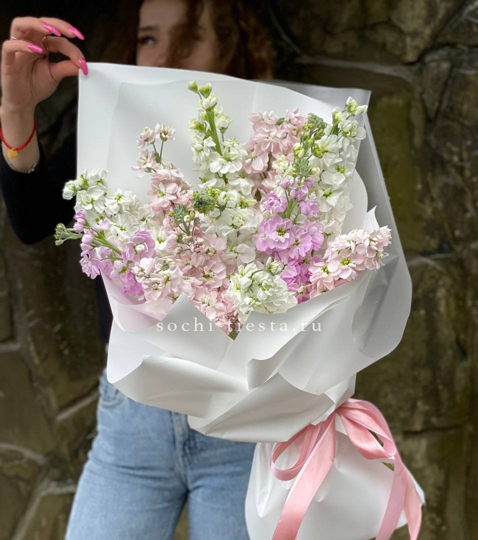 маттиола - 13 веток, лента, дизайнерская упаковка.