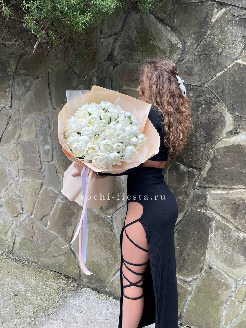белый пион, лента, упаковка на выбор.
