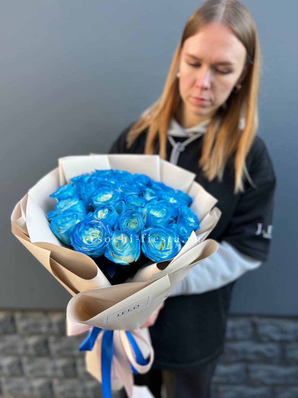 цена букета указана за 15 роз Состав букета на фотографии: синие розы - 25 шт., лента, комбинированная упаковка.