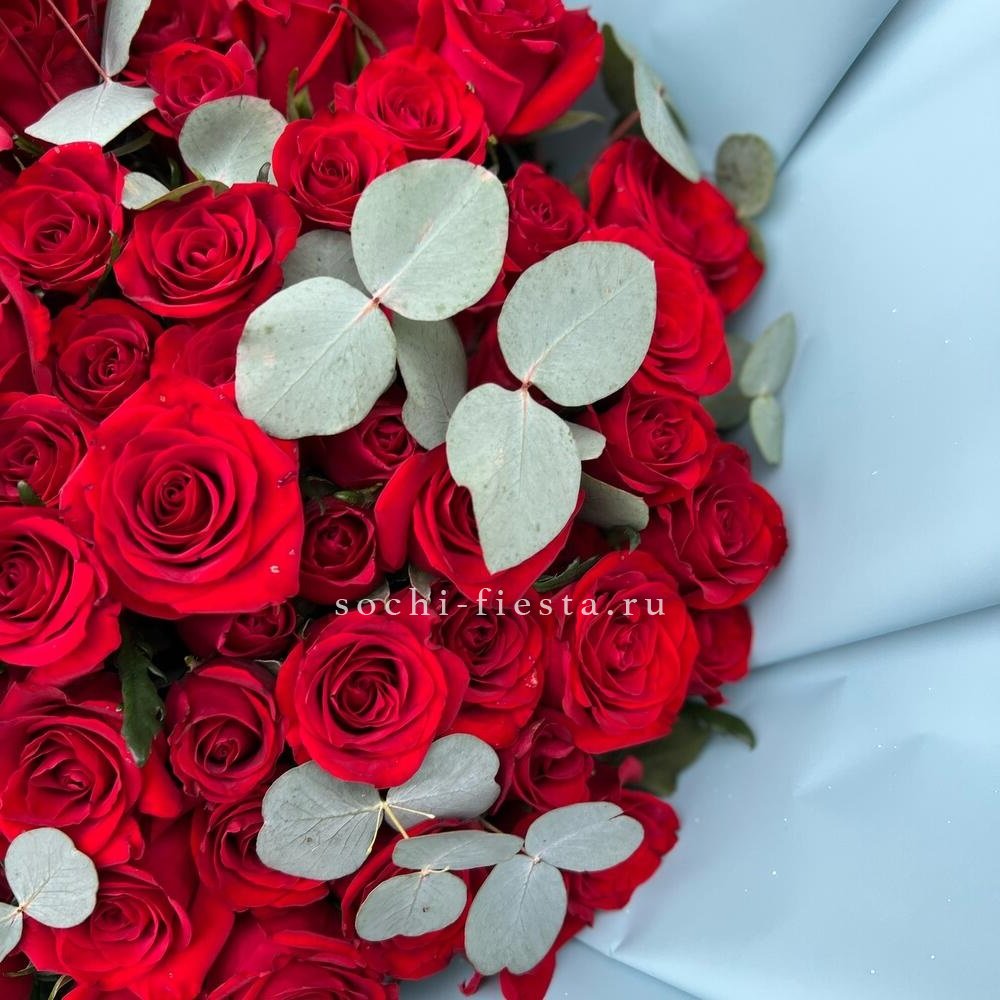 101 роза разноцветных оттенков, лента, упаковка на выбор.