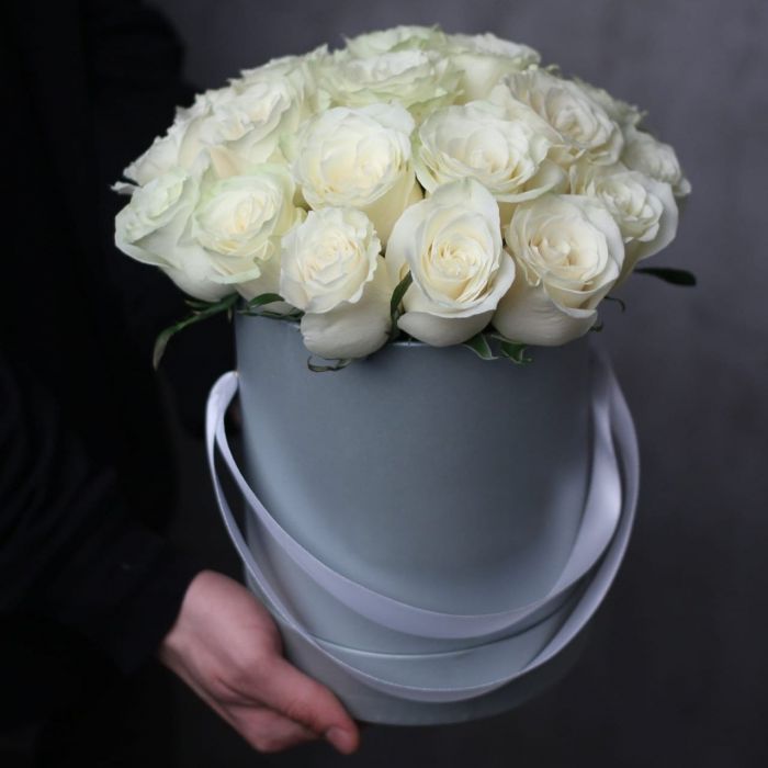 Пятьдесят один бутон выстраиваются в объёмную сферу с чёткой геометрией. Белые розы держат форму и создают ощутимое визуальное присутствие. Букет занимает пространство уверенно и спокойно.