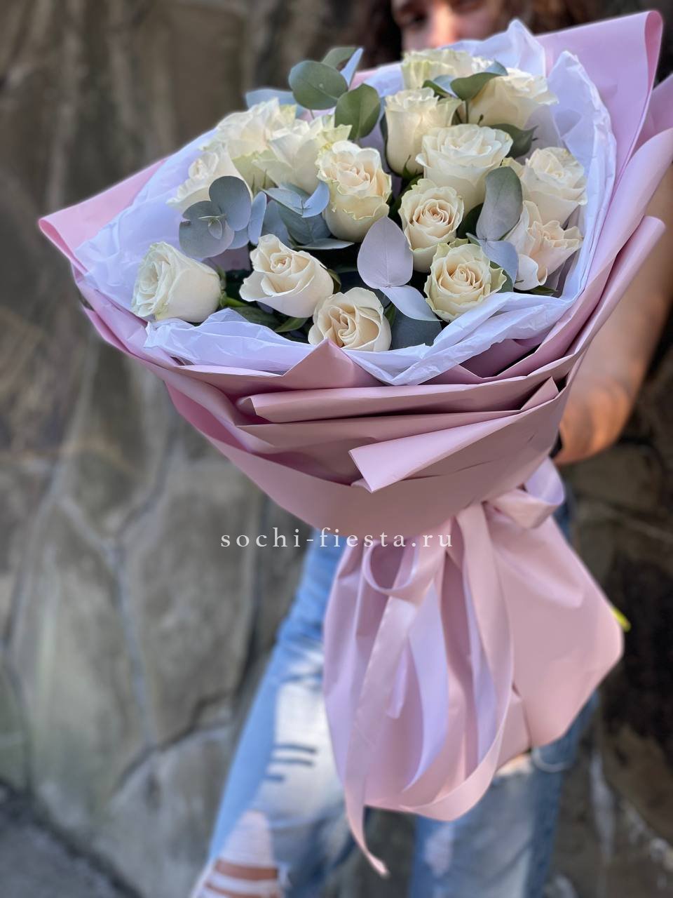 Для заказа товара "Белые розы в авторском оформлении" с доставкой в Великом Новгороде нажмите в корзину