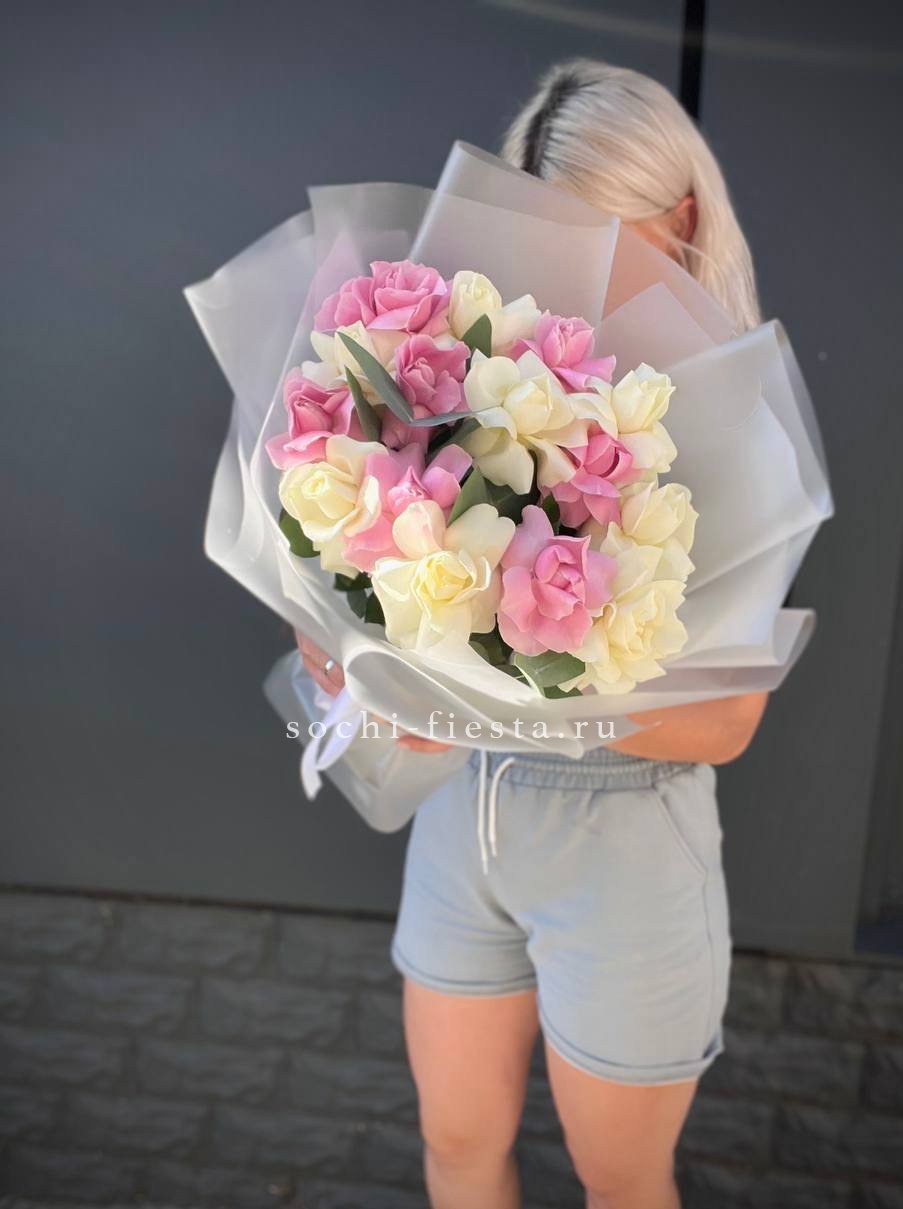 Для заказа товара "15 бело-розовых роз" с доставкой в Великом Новгороде нажмите в корзину