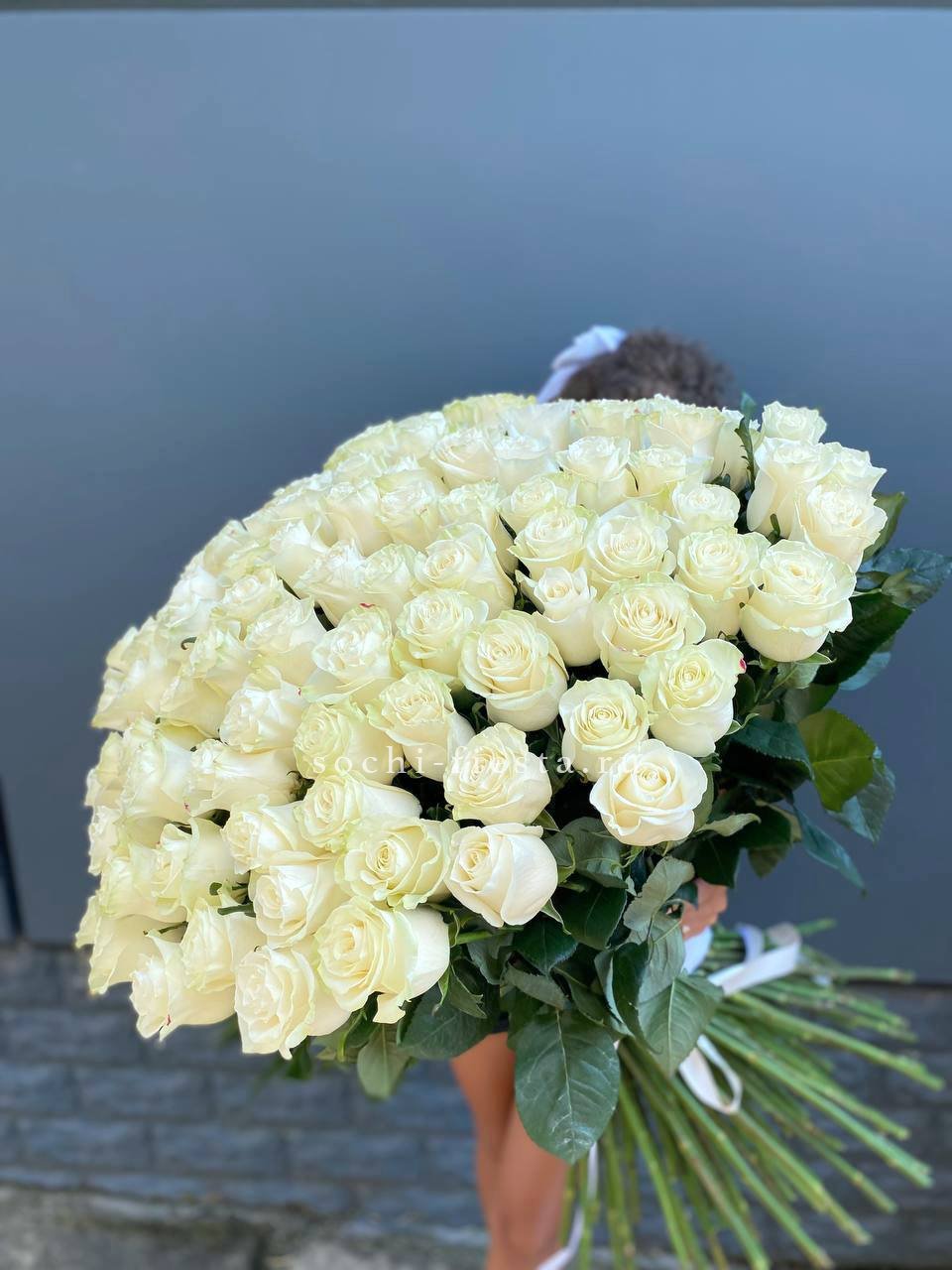 Двадцать пять бутонов выстраиваются в пышную композицию с чётким ритмом и объёмным силуэтом. Голландские розы создают впечатление монументальности и уверенной подачи.