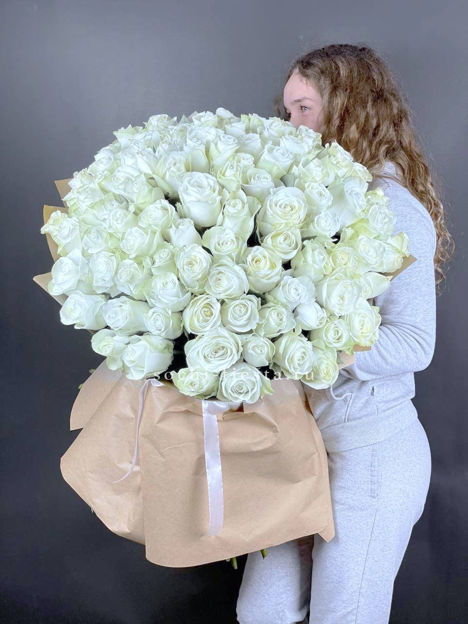 Двадцать пять белых бутонов раскрываются слоями и создают воздушную фактуру с глубиной. Голландские розы удерживают свежесть и сохраняют структуру долгое время.