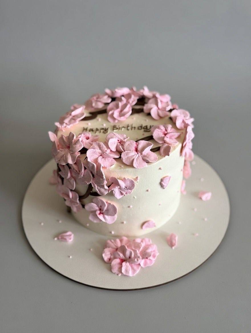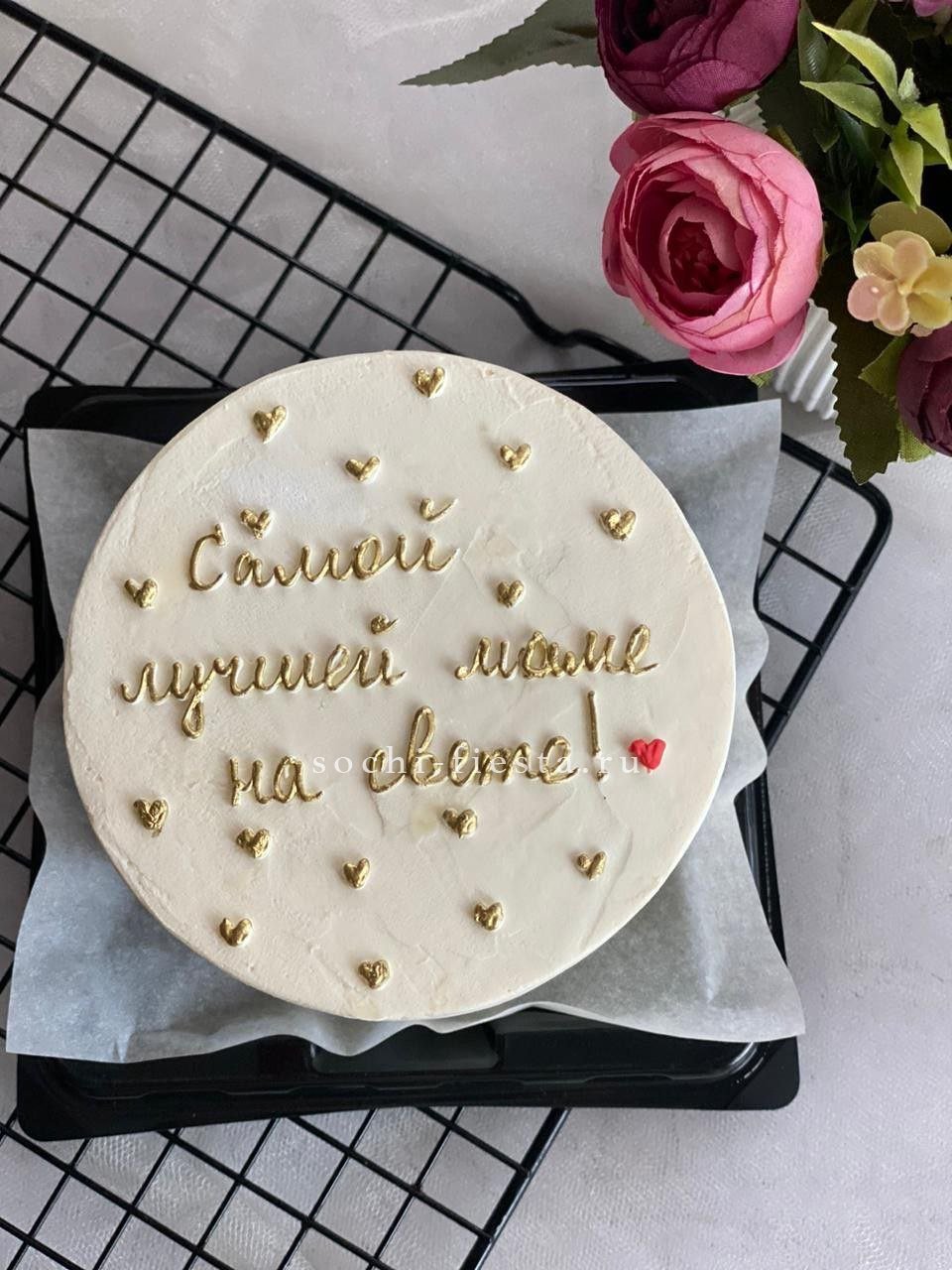 Компактный десерт ручной работы с весенним оформлением в красно-белой гамме. Кремовая текстура и графичный декор создают праздничное настроение. Два варианта начинки позволяют выбрать любимый вкус.